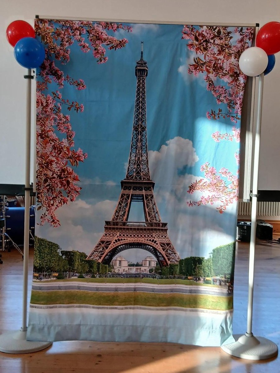 Dank der großzügigen Spende von Herrn Daniel Damb, Schülervater aus der Q13, stand uns für unsere Fotoaktion eine neue Leinwand mit einem wunderschönen Bild des Eiffelturms zur Verfügung.