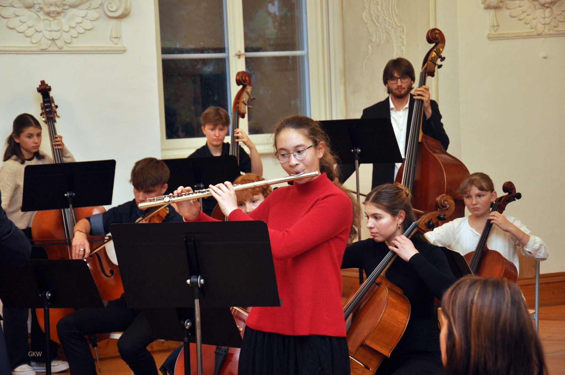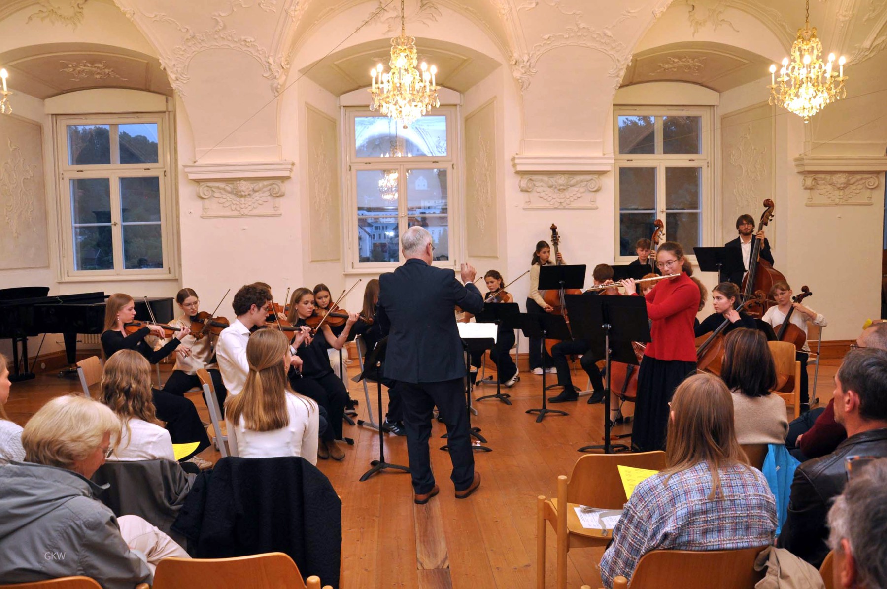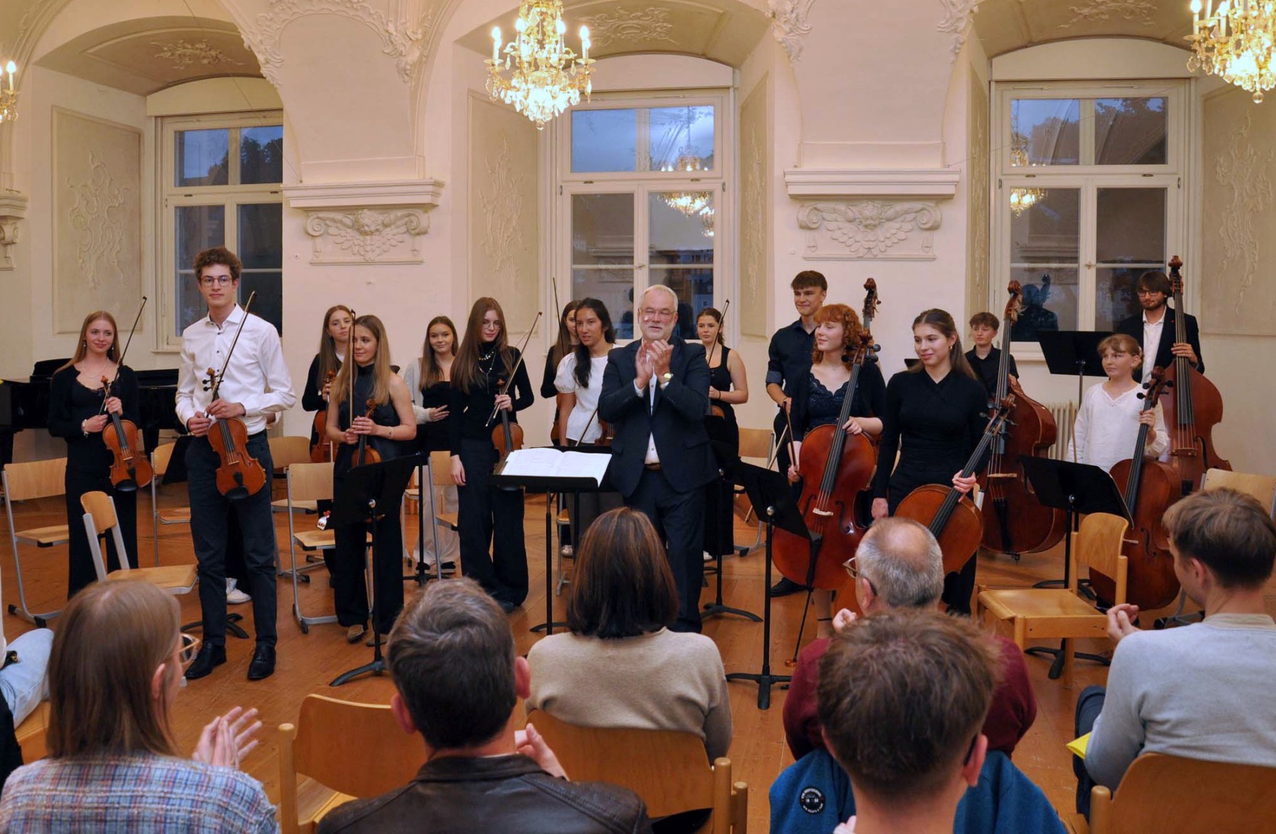 Die Aula des Leopoldinums verwandelte sich in einen „Prunksaal“, was der ursprünglichen Bedeutung der Kammermusik sehr nahe käme, so Schulleiter Dr. Konrad Wieland. Mit diesem heimeligen Gefühl wurde das Publikum durch die Epochen geführt, eine Zeitreise von Haydn über Tschaikowsky und Grieg bis hin zu Filmklassikern von Ennio Morricone – für jeden war etwas dabei.