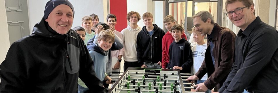 Am Leo kann endlich wieder richtig gut gekickert werden. Schulleitung und SMV haben sich zum Kauf eines neuen Kickertischs entschieden. Dank der Hilfe von Thomas Preszdink, dem Vater einer Schülerin, konnte ein ganz besonders wertvolles Exemplar angeschafft werden: Ein Profi-Turnierkickertisch der Firma Leonhart, direkt von den Deutschen Meiserschaften kommend. Thomas Preszdink lieferte den Tisch und …
