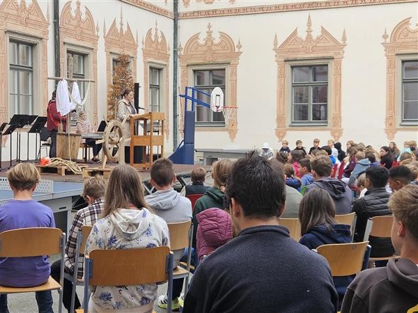 Im Innenhof des Leopoldinums versammelten sich Schülerinnen und Schüler sowie ihre Lehrkräfte und die Mitglieder der Schulleitung, um darüber nachzudenken, wie sich die Aufgaben und Herausforderungen des vor und liegenden Schuljahres bewältigen lassen. Dies gelingt vor allem dann, wenn man auf die eigenen Fähigkeiten vertraut und alle gemeinsam „an einem Strang ziehen“. Auch der zugesprochene Segen Gottes kann dabei helfen, bei der oft abenteuerlichen Fahrt „auf Kurs zu bleiben“.