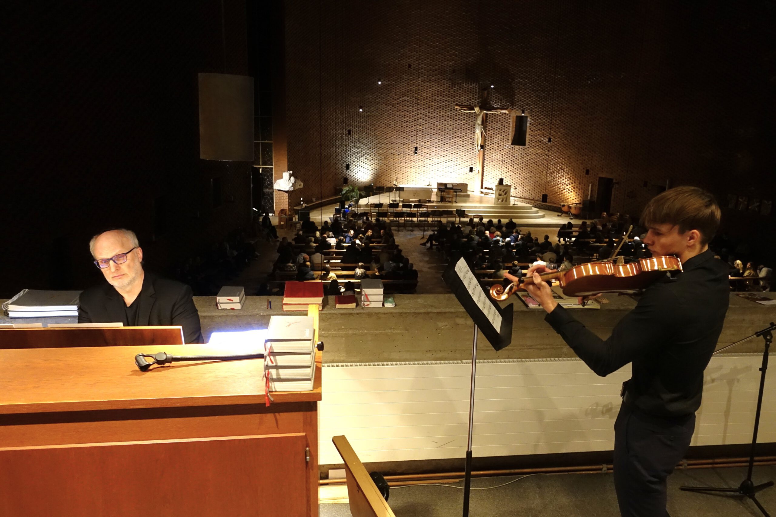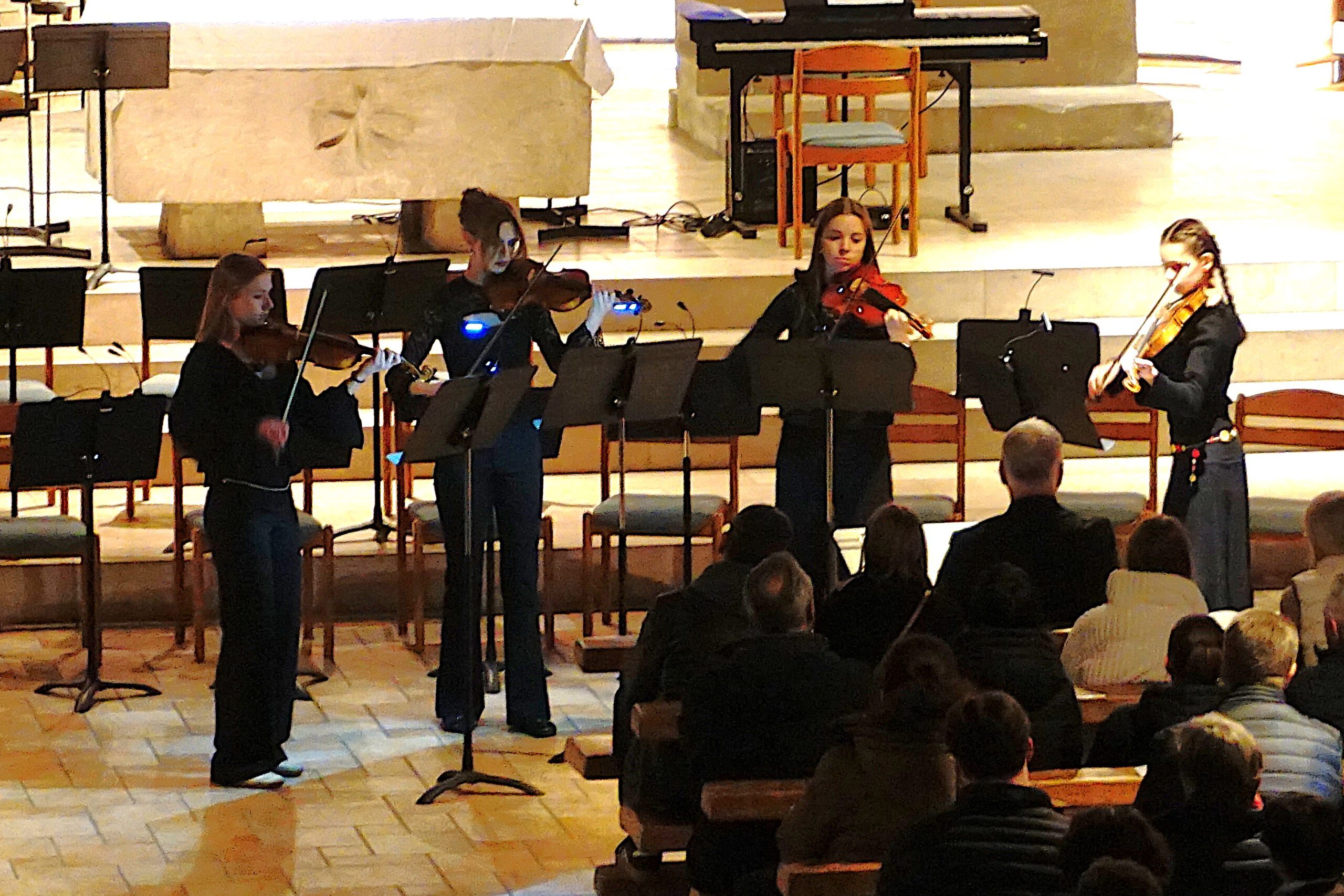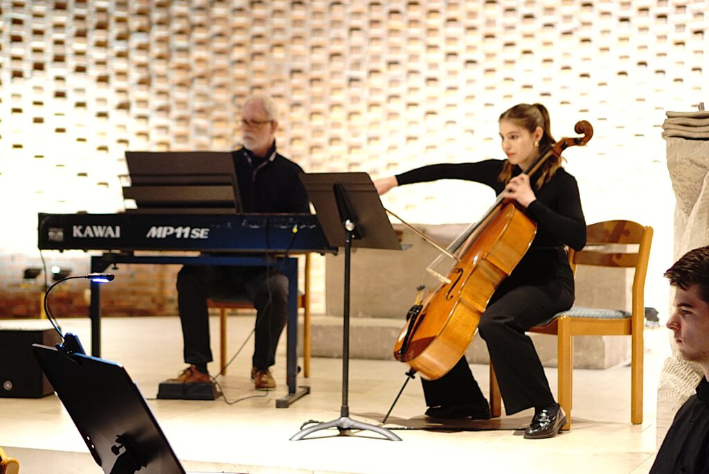 Einen besonderen Glanzpunkt setzten die Solisten Nora Schlingmann und Severin Tausch, erstere mit Fauré („Sicilienne“ für Cello und Klavier) und letzterer mit Bach (Arr. der berühmten „Air“ in D-Dur für Viola). Beide Darbietungen vereinten technische Versiertheit mit tiefer Emotionalität.