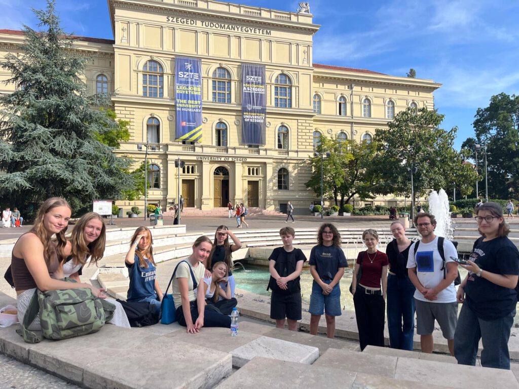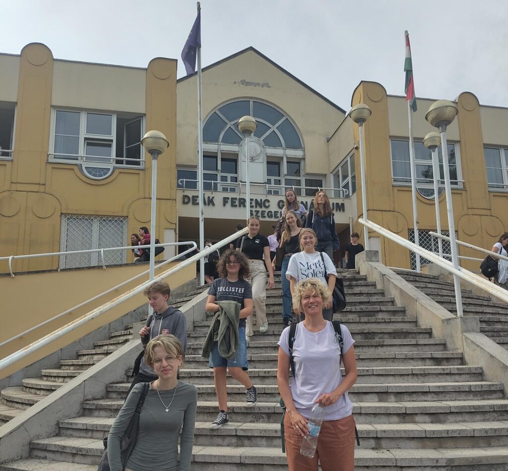 In Szeged angekommen waren die Vormittage gefüllt mit dem Besuch von Unterrichtsstunden und Arbeit für das Blog-Projekt. An den Nachmittagen standen u.a. ein gemeinsamer Workshop mit Hr. Fuchs zu Nachhaltiger Entwicklung gemeinsam mit den Schüler/-innen und Lehrkräften des DFK Szeged, der gemeinsame Besuch eines Jugendzentrums und eine Erkundung der Stadt und ihrer Sehenswürdigkeiten, geführt von den ungarischen Schülerinnen, auf dem Programm.