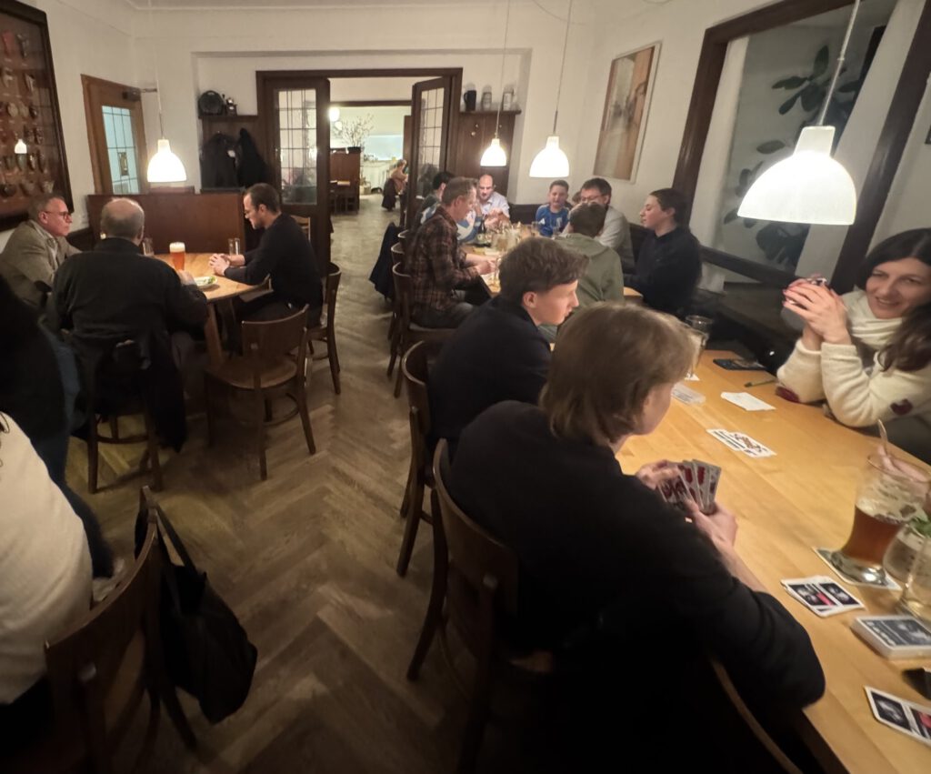 Am 5. März 2026 veranstaltete das P-Seminar „Schafkopfen“ einen Schafkopf-Abend im Wirtshaus „Goldenes Schiff“. Rund 25 Schülerinnen und Schüler, Eltern sowie Lehrkräfte nahmen teil.