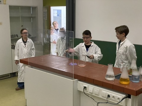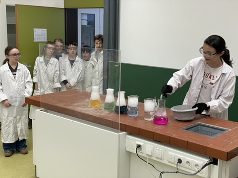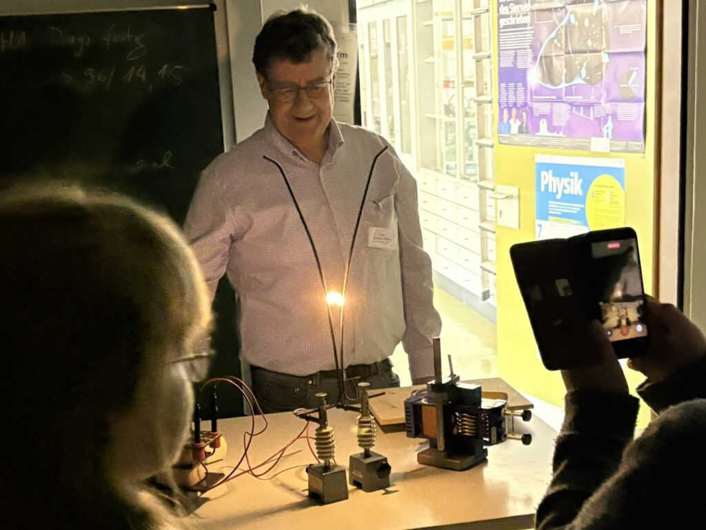 Großes Interesse weckte der Fachbereich Biologie und Chemie, der mit einer faszinierenden Show begeisterte. Schülerinnen und Schüler präsentierten eindrucksvolle Experimente, die nicht nur zum Staunen einluden, sondern auch selbst ausprobiert werden konnten – ein Angebot, das durchgehend sehr gut besucht war.