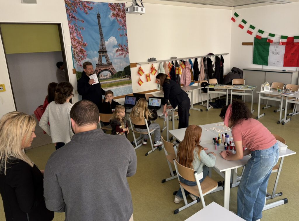 Die Fremdsprachen präsentierten sich vielfältig und lebendig: Latein, Englisch und die weiteren Fremdsprachen Französisch, Italienisch, Griechisch und spätbeginnend Spanisch stellten ihre Besonderheiten vor und luden zum Entdecken ein. In Deutsch und Mathematik konnten die Gäste an Mitmachstationen selbst aktiv werden und so einen Einblick in die Fächer gewinnen.
