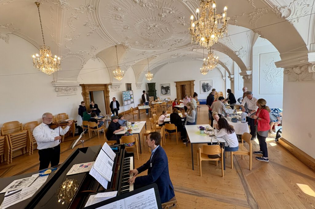 Ein beliebter Treffpunkt war das Elterncafé in der Aula, das mit Getränken und einer großen Auswahl an Kuchen zum Verweilen bei live gespielter entspannter Kaffeehausmusik einlud. Im Pausenhof sorgte die Q12 mit erfrischenden Mocktails für gute Stimmung, während der Schulgarten, welcher die GemüseAckerdemie beheimatet, mit Sonnenschirmen und Liegestühlen zu einer entspannten Pause einlud.